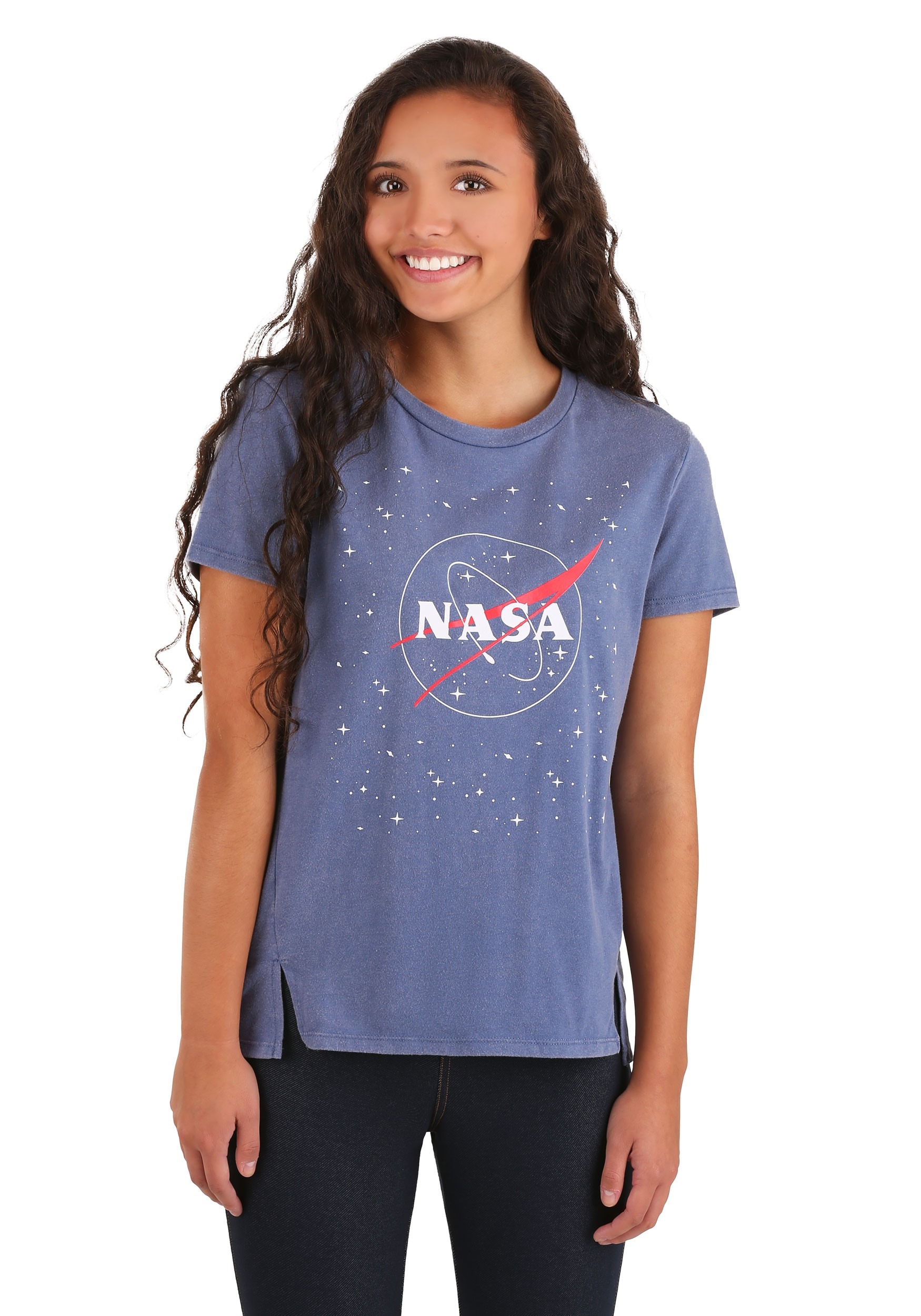 Haven’t you heard? STEAM is all the rage! So your young scientist, engineer, or mathematician is off to a good start, especially when they wear this Womens NASA Tee to their weekend robotics competition. It’s a vintage-inspired tee with the NASA logo floating in a sea of stars.